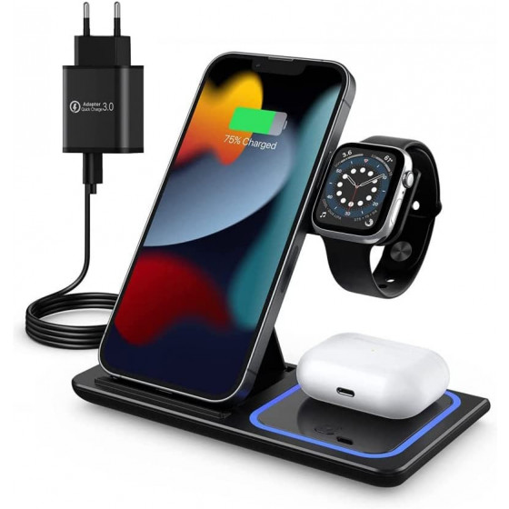 G-TELWARE® 3/4 in 1 opvouwbaar, draadloos opladen, QI inductie opladen voor iPhone/iWatch/Airpod/Android (3-IN-1, SNOW WHITE)